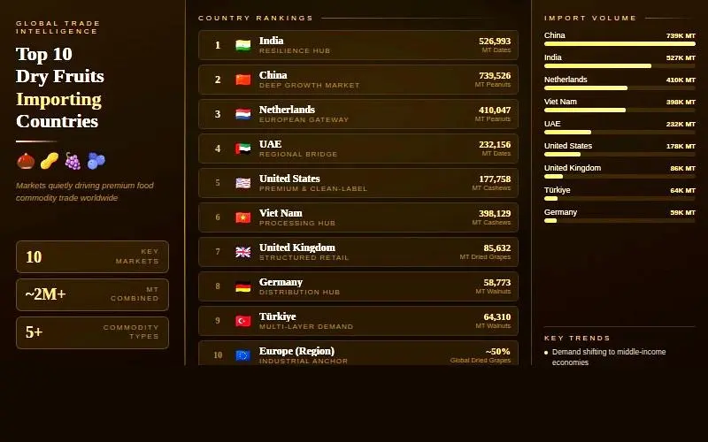 Here are the countries shaping the dry fruits trade in ways many exporters tend to underestimate.