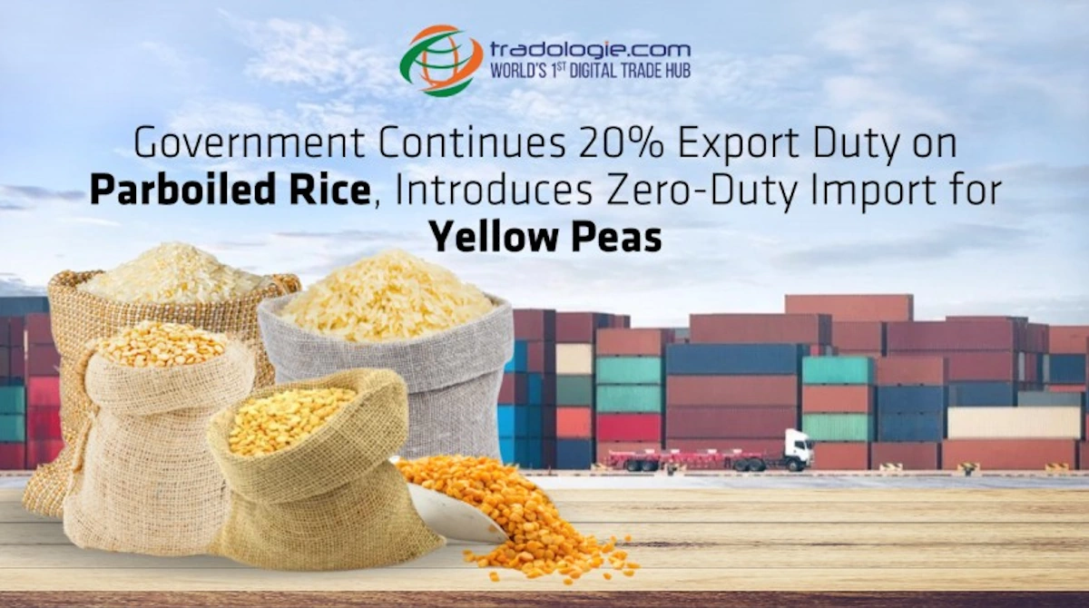 The Union government has kept the 20% export duty on parboiled rice indefinitely in response to the surge in rice prices. For yellow peas, It has also decided to permit the zero-duty import regime, provided the Bill of Lading is issued on or before 30th April' 24. On March 31, 2024, the 20% duty on parboiled rice was scheduled to expire. Following the Committee of Ministers' approval of the proposal put forth by the Consumer Affairs and Food Ministry, the Finance Ministry announced its decision, according to sources. According to official data, as of February 20, the average retail price of rice in India increased to ₹44.11/kg (0.34%) in a week, while its wholesale prices increased to ₹3,876/quintal (0.07%). However, as of February 20, rice inflation is higher year over year at 15% in both retail and wholesale.